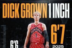 我也长高了!迪克官方身高数据比上赛季高了1英寸 现在201CM